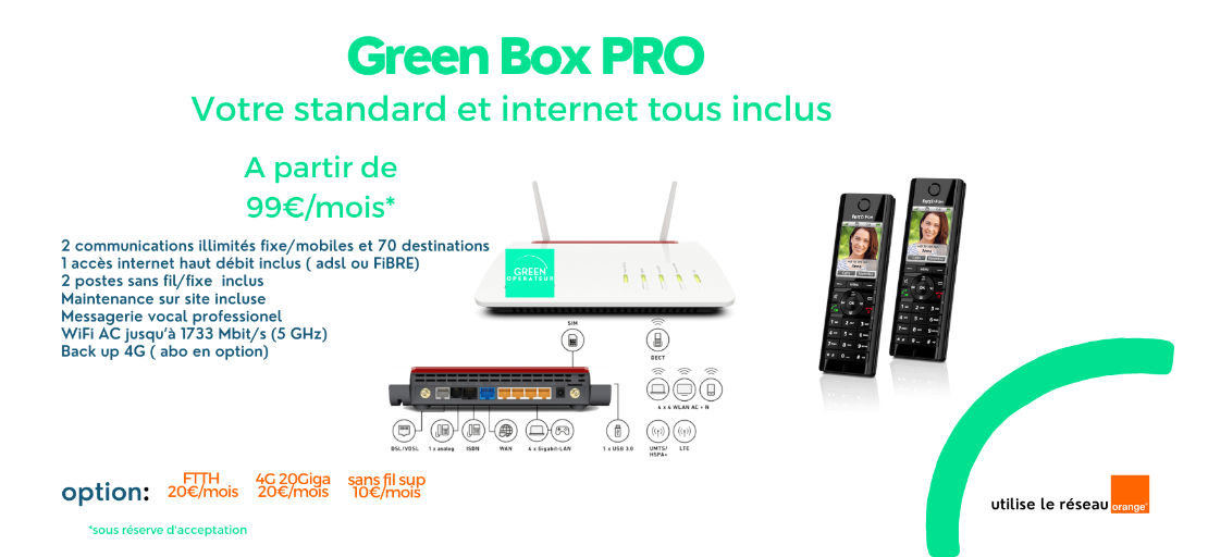 Notre box quel soit adsl ou fibre permet d'avoir un back up 4G intégré sur la box afin d'être toujours connecté même en cas de panne . La box bascule automatiquement sur le réseau 4G afin que l'ensemble des services reste toujours actif.